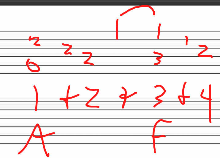 C-F-G-C two bars each