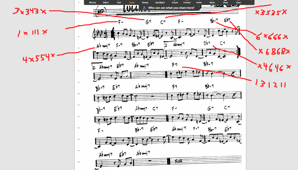 note: on the backing track they use these changes for bars 13, 14, 15: