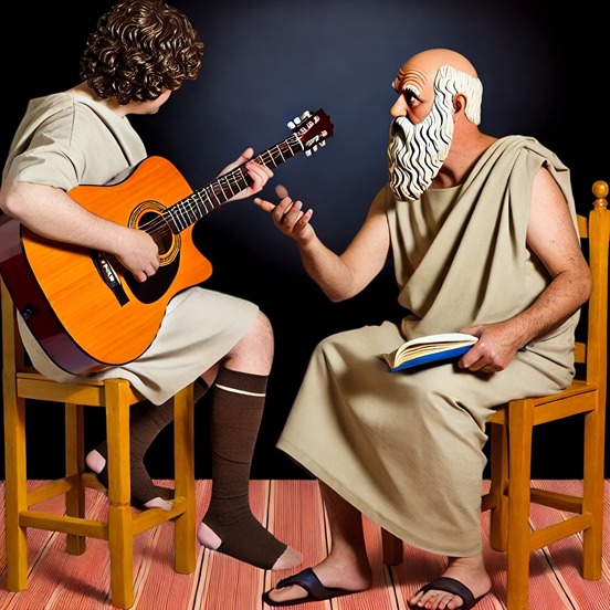 /by Dennis WingeThe art of teaching is as varied and nuanced as the art of music itself. At Guitar Lessons Ithaca, we’ve adopted a unique approach to teaching that not only resonates with our students but also honors the method my father used to teach my siblings and me when we were growing up. This approach, inspired by the Socratic method, revolves around asking a series of questions designed to draw out the necessary information for students to figure out how to do something on the guitar that they might not be sure they can accomplish. This method, grounded in the philosophy that education means to educe, emphasizes critical thinking and active participation.