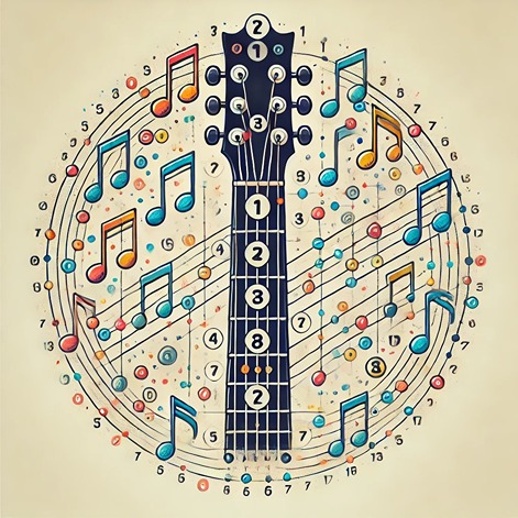 If you’re not accustomed to thinking in numbers, a good exercise is to write out your scale fingerings using integers instead of dots. This method simplifies the process of finding melodies and riffs anywhere on the neck. Think of it as “paint by numbers” for the guitar—once you recognize the numbers, you know where to “paint” the notes on your instrument.