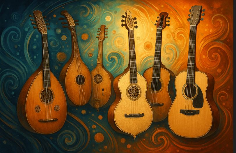 The lute, arriving in Europe from the Arabic ʿūd, is arguably the most influential ancestor of the modern guitar. With its rounded back, fretted neck, and multiple courses (paired strings), it became the Renaissance and Baroque era’s favorite household instrument.
